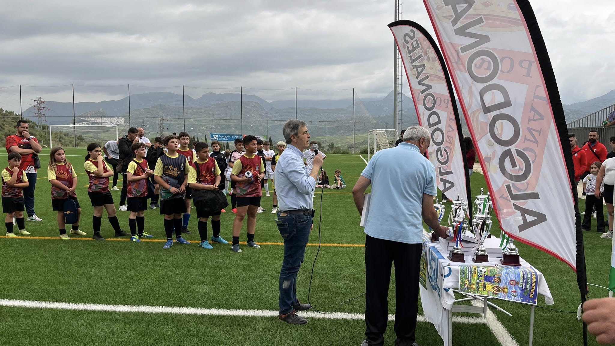 Tras esto, el alcalde, junto con el concejal de Juventud, Pablo Luna, el alcalde de Grazalema, Carlos García, el representante de la liga, Paco García, y representantes de la RFAF y de la UD Algodonales, obsequiaron a todos los equipos con un trofeo y una medalla para recordar este bonito día de convivencia.